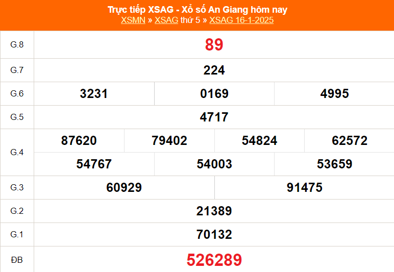 Chốt lô Cần Thơ đặc biệt ngày hôm nay 16/1/2025 như sau:
